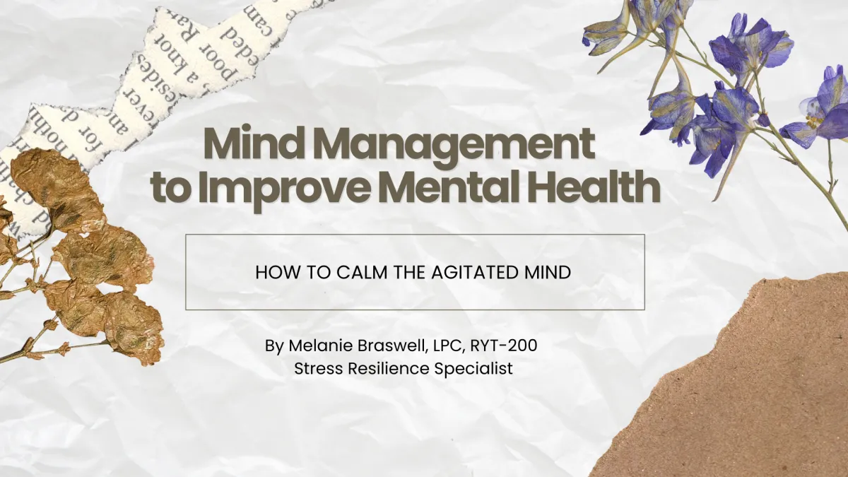 Join Melanie Braswell, LPC, RYT-200, Stress Resilience Specialist, for an online training, Mind Management for Improved Mental Health. In this session, you’ll learn how to expand your window of tolerance, calm an agitated mind, and develop practical tools for navigating stress with greater steadiness. Grab a tea or mocktail, invite a friend, and take a step toward building a life where you can feel present and better equipped to cope with whatever life brings. ✨